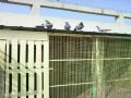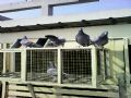 这是在楼顶种的大蒜、苦瓜,豆角、黄瓜、西红柿、茴香、香菜、南瓜,没法再多种了,从楼下把土运上来太麻烦了,这些菜都是我们领导种的。本来是三间鸽棚的,那对大鸽子是今年飞过500公里的赛鸽,比赛回来就下了一个蛋,那个蛋应该是下在外面了,这五个幼鸽从旁边棚里拿出来放在赛鸽棚里面了,怕那对鸽子欺负小鸽子,我就用网子装上合页做了个临时的门给分开了。