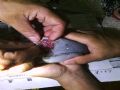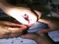 作品说明: 今天去给鸽友老罗送鞋子,网上订购的,今天到货了,晚饭后没事,打电话约好去他家 喝茶,顺便送鞋子过去,到他家,他说来了一只鸽子,来了五天了,总在棚附近飞,就 是不下来,今天终于下来了,还没进,站在跳台上……天快黑了,棚里亮起了灯,她也 没走,就在那闭着双眼,老罗站在阳台上护栏上,伸手捉住了她,动作有点危险,我们 都捏了一把汗,虽然只是二楼,但掉下去后果也不堪设想,搞不好就上中信网头条 了……鸽子捉到屋里,才发现老罗手上一手的鲜血,原来她受伤了……接下来记录手术 过程,手机拍的效果不太好,大家将就着看吧!
