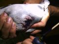 这鸽子死定了!弹弓打的!钢珠在体内没取出来一旦发炎就玩完了!!!