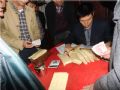 四、组委会领导,梁平县信鸽协会副主席蒋林翔,山寨板“主拍手”,对13羽优胜鸽主持拍卖。以三寸“惊堂木”木板,拍出今天万元冠军鸽……。创造的秋季拍卖新高。