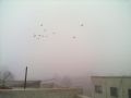 作品说明: 昨天还是阳光普照,今天天气就笼罩在雾霾下,把鸽子简单的家飞一下。