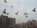 早上7点多家飞看到天空鸽子不少