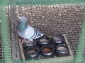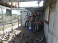分棚后雌鸽棚放只鸡起到不叫鸽子下蛋的作用。