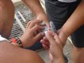 这样打针,说不定要起包,到时你还要用刀割!!!精神可嘉给3分,但是,鸽友们千万不要照搬! |