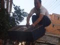 放鸽笼也太小了,车顶小笼凉快。