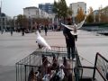 嘿。。真牛逼。你们注意看没。这鸽子从鸽笼到老人之间来回飞。而不是像我们一样。鸽子直接飞回家了。老人家真牛。