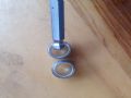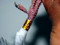 作品说明: 每年很多鸽友在给信鸽套环之后,发现信鸽腿部肿胀,流血等,找不到原因,其实是足环内部内径铝制圈切口上带的残留利刃割伤了信鸽腿部。再次上图,提醒各位鸽友套环时一定要先检查足环内部,没有问题,方可佩戴,有问题可以使用铁钉或者棒形磨石在内径里边转动,把翘出来的残渣利刃,磨掉. 假如佩戴时没有检查,等我们把幼鸽交到寄养棚或者公棚比赛,等幼鸽变成成鸽,腿部变粗,受伤的是鸽子,吃亏的是自己..