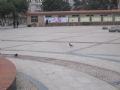 前往鸽棚的路上,看见广场上打野的鸽子。