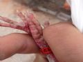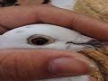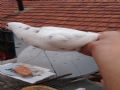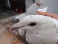 作品说明: 昨天下午回家喂鸽子,看到我棚里多了一只白花鸽子,抓住一看环号是2014-16-173011 另一只脚上带的副环上面写着:特比12171。抓住一看,脚上三个脚趾头全都被黑的细网 缠住了,我判断应该是被网住了,又自己挣脱了。本来我想放开的,但是一想,放开之 后他万一再回不去还是会被有些人抓住,干脆我先将他关起来,好好养着,静等他的主 人联系我。如果有知道这只鸽子的,跟我联系,我给您发车发回去。毕竟都是养鸽子 的,将心比心吧!