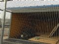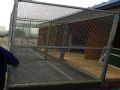 你这个棚总的来说很不错了,但是有点缺点就是当时应该把屋顶做成人字立,还要比较陡的,这样鸽子比赛归巢之后直接落降落台,每间的门做的比较好也比较科学,后面的通风口不该用钢巴,有百叶窗的嘛!放保健砂的地方下面最好用张板子,喂粮食的也应该在里面,外面的话下雨了怎么办?最后,问下你做的这个棚大概是多少的平方,花了多少钱,我准备盖一个,谢谢!