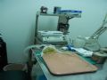 那个台子是胶布要经常粘来粘去,桌子垫板下的纸张有点发旧,诊所每天要消毒的,卫生检查相当严格,器械闪闪发光呢。鸽友眼睛相当厉害啊!! |