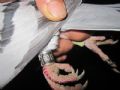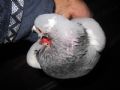 作品说明: 给鸽儿晚餐,一进棚就看见棚内歇架上站着一只萎靡不振的鸽,仔细一看,脖子上羽毛扎起,有一个洞,上手一看,原来是过路的鸽,这才想起中午给鸽子家飞后没关放飞门。赶紧抓出来,放在小笼内给了点玉米,只见狼吞虎咽的吃了起来。由于晕血,也没敢缝合伤口,还是让它自己恢复。站着一只外来鸽。灰花头、雌、黄眼、佩戴有浅绿色电子环、正规环号为:2015—22-0206109,消瘦、啦绿便,吃了食物后,精神了许多。发此图别无它意,只希望鸽主能看到,并以此了解自己鸽子训赛基本情况。如恢复定将其放飞,不能恢复,将淘汰。顺告鸽主,我地位于山区和四川广元接壤,近几日来,均为阴天,每天均有零星小雨。祝它早日康复!