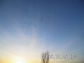 作品说明: 最近鹞子成群,整天悬于鸽舍上空,有蓝天不能熬翔,真是莫大的委屈。今天下午临黑 时,实在按耐不住蓝天的诱惑,随手放鸽出笼,鸽儿冲向空中,似乎有飞不完的劲。
