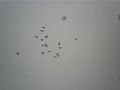 作品说明: 受多日的雾霾影响,鸽们都无精打采了,今天中午雾霾稍小点时,拿来红旗,放鸽家 飞,鸽们在红旗的指引下,飞的还真卖命。