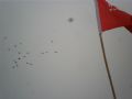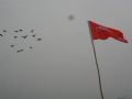 我们是在中国,开春到是没有,不过每天都要家飞,包括下雨或刮风,只是有了这面红旗,鸽子飞的更卖力了。