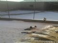 鸽子吃雪容易得病,最好用玻璃瓦将晒棚顶上盖住,防止雨雪进入晒棚。