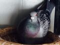 赛鸽棚里雌鸽在孵蛋