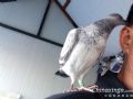 作品说明: 爱鸽和主人的亲密度非常好!我每当打扫鸽舍卫生时候、它就飞我肩头上来!啄我耳朵,和头发!看看这看看那的、很可爱!