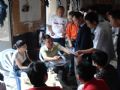 拍卖前鸽友在参观获奖鸽血统表