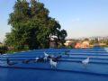 这蓝色的大彩钢铁皮到爆嗮夏天鸽子们就不在上边玩了,烫脚,干蒸的滋味不好受! |