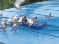 流动水给幼鸽洗澡