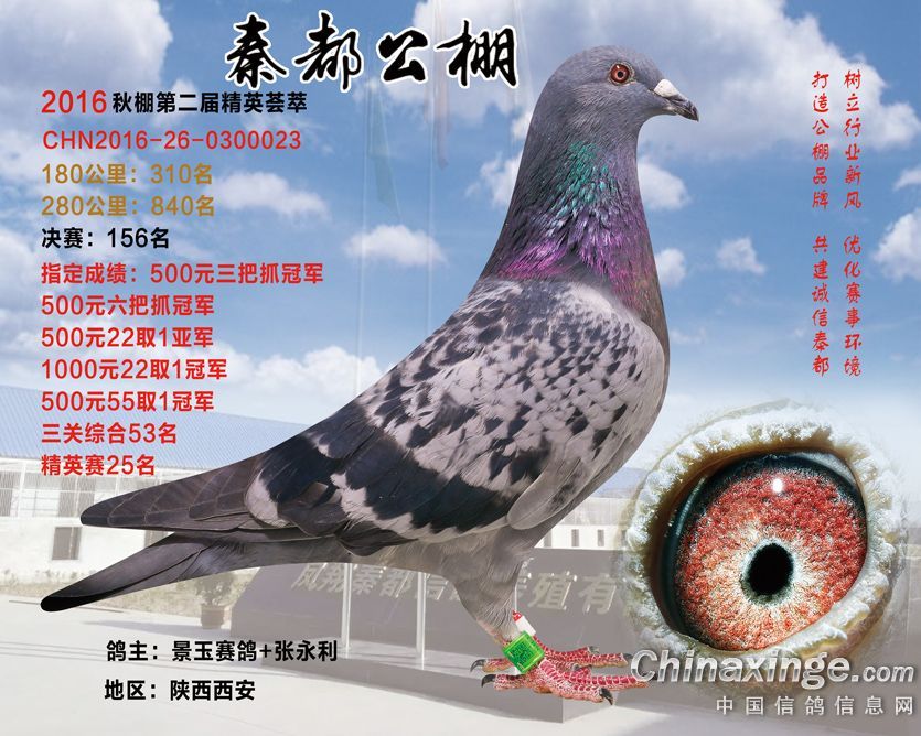 陕西凤翔秦都公棚2016年获奖鸽展示(151--180名)