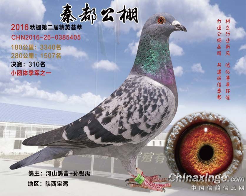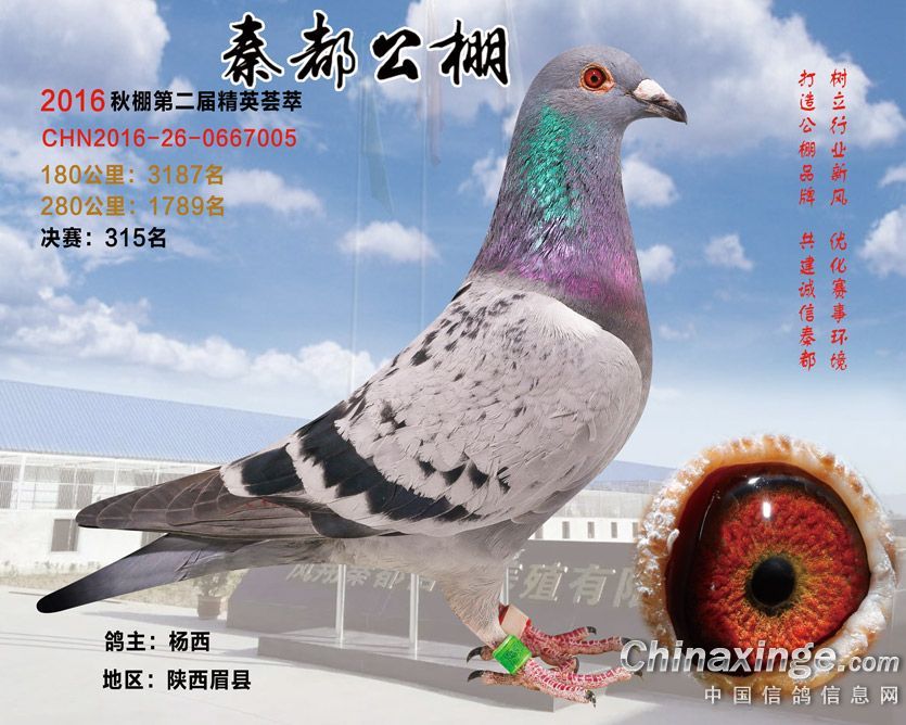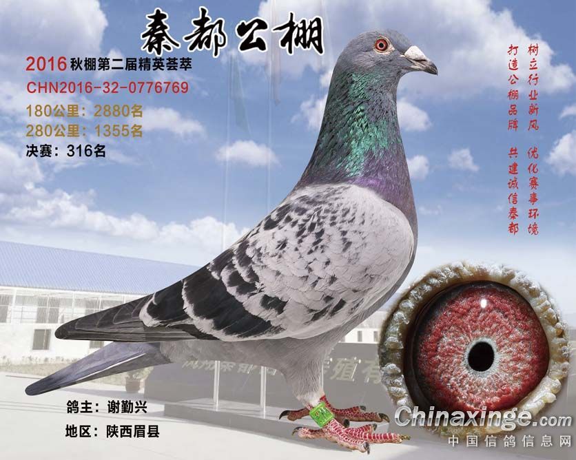 作品说明: 陕西凤翔秦都公棚2016年获奖鸽展示(301--330名)
