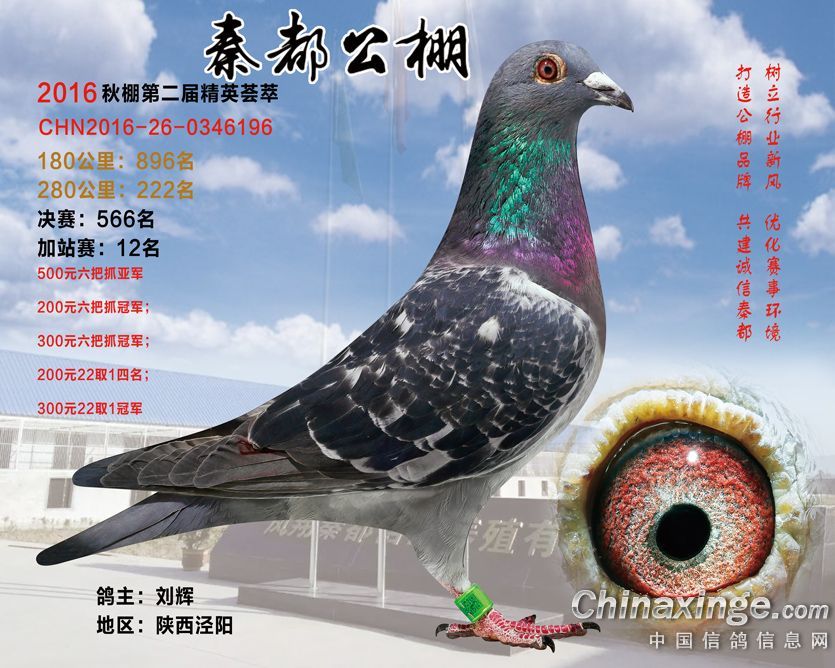 陕西凤翔秦都公棚2016年加站赛获奖鸽展示(冠军--30名)