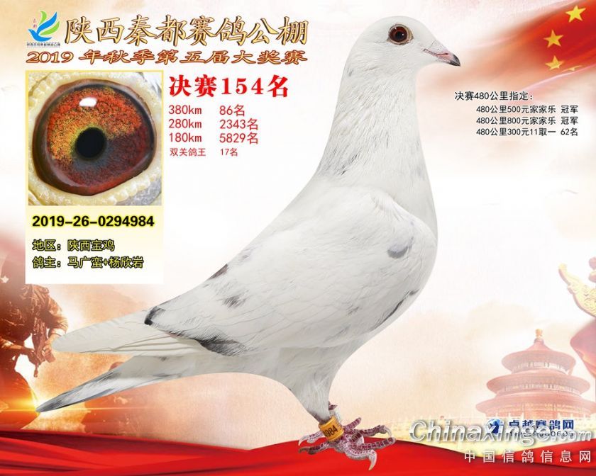 陕西凤翔秦都公棚2019年获奖鸽展示(151—200名)