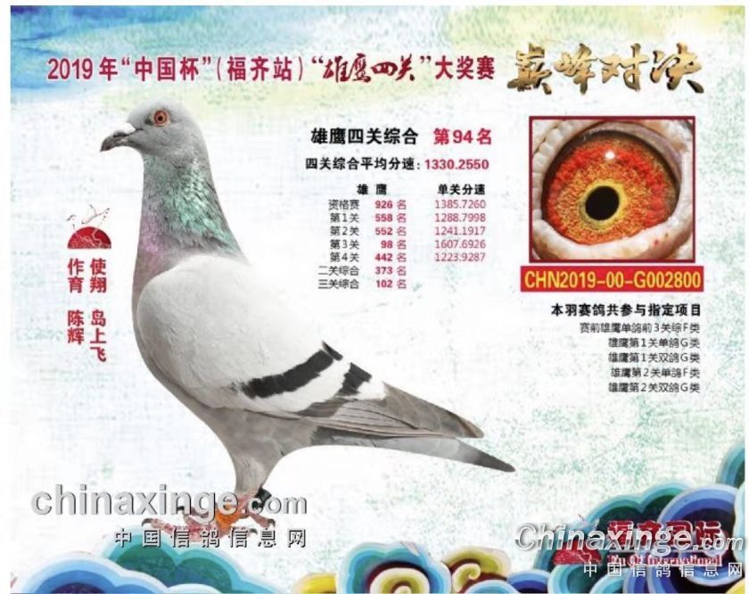 首次2019年“中国杯”雄鹰四关,参赛五羽,两羽入赏