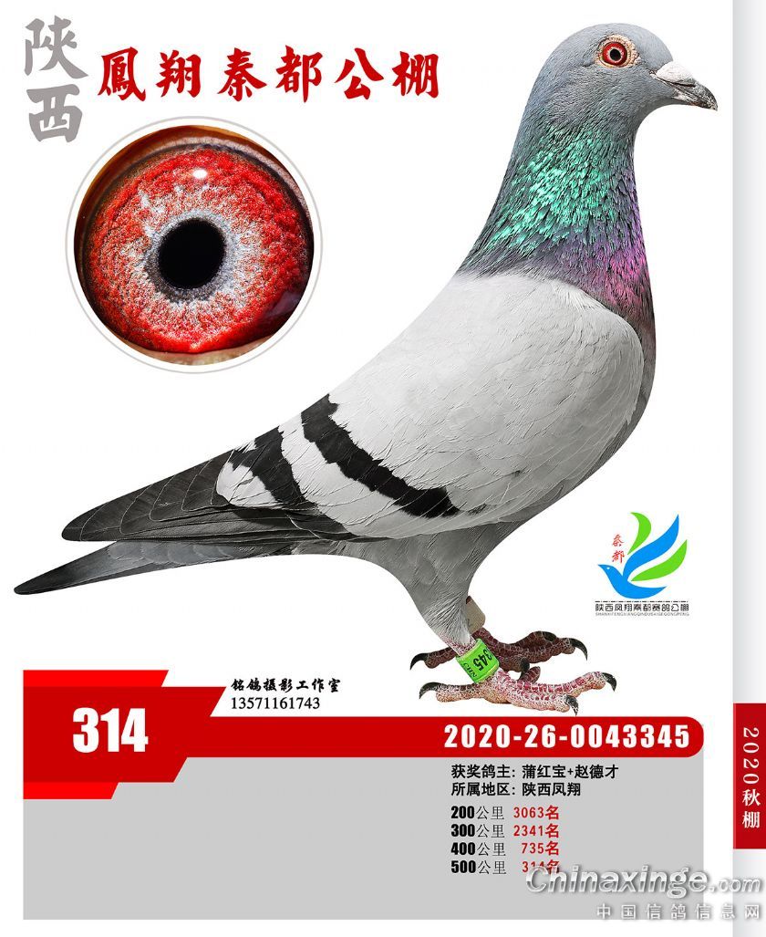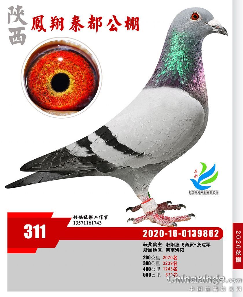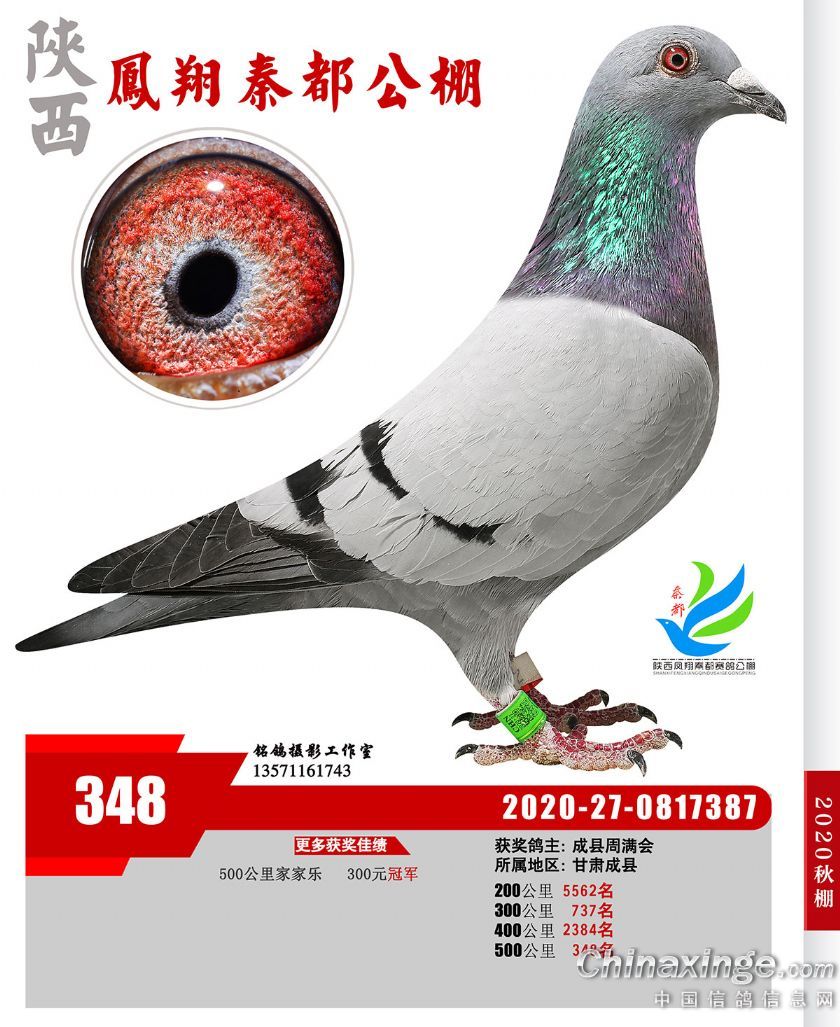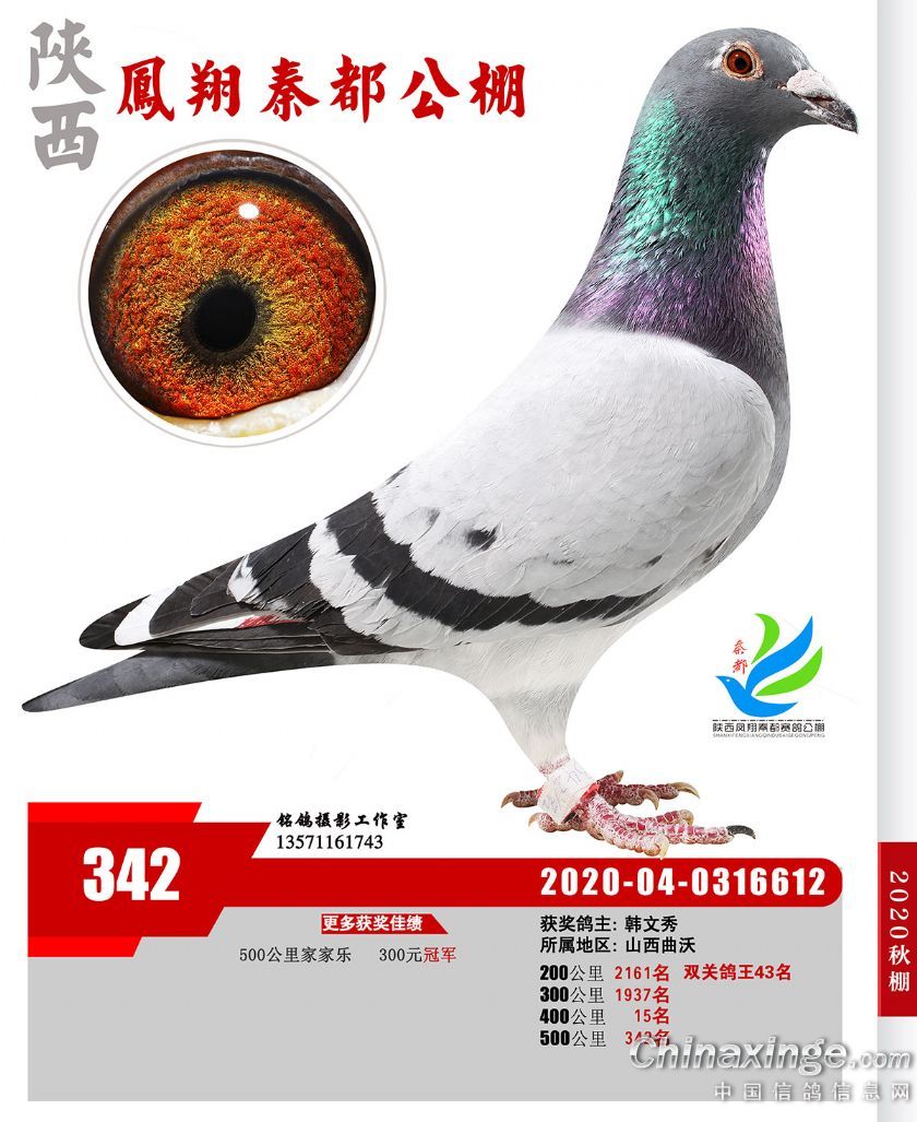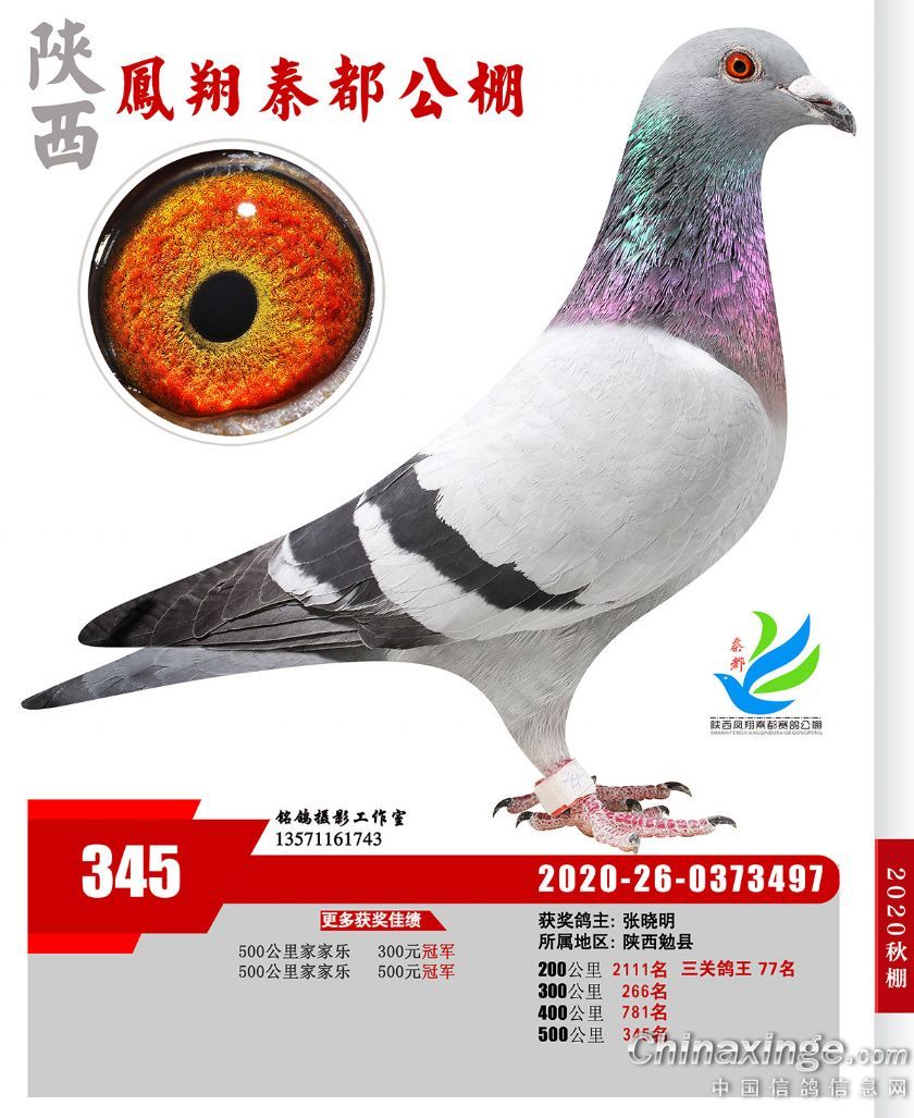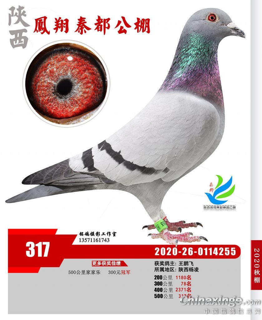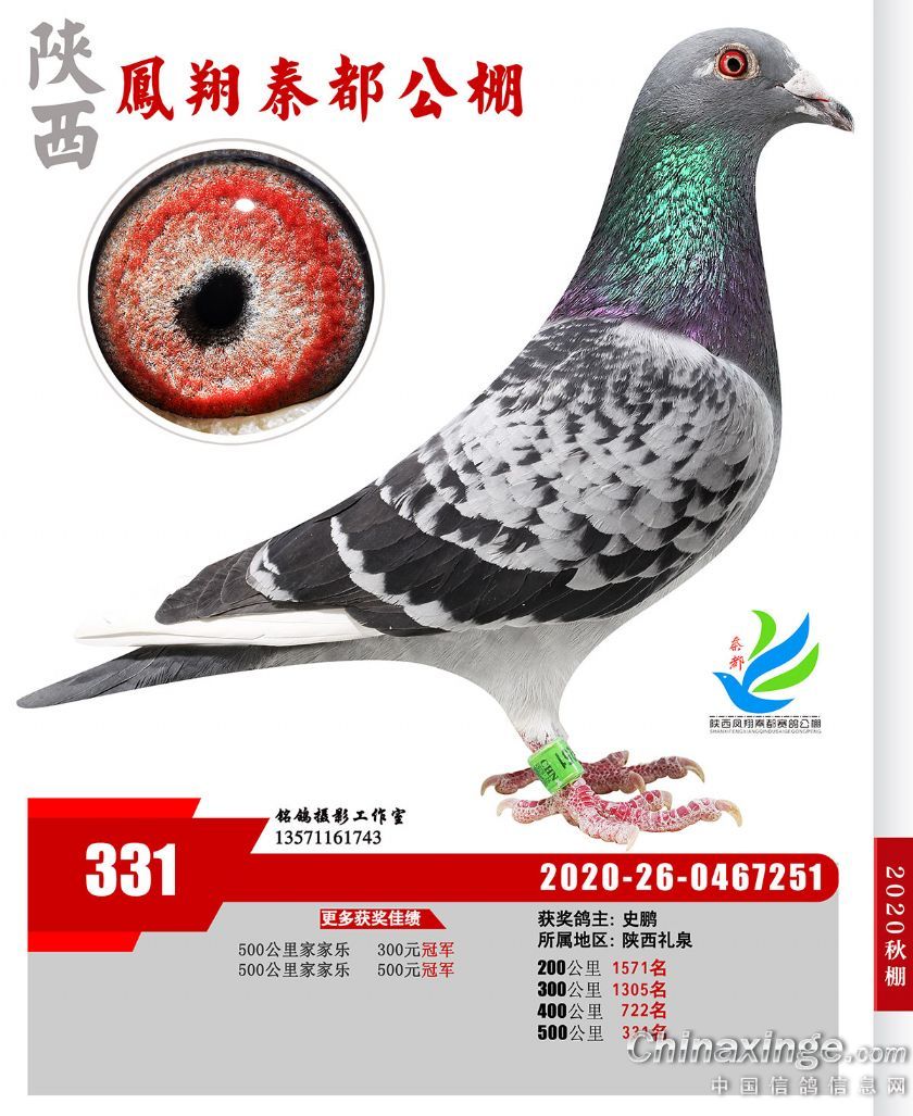 陕西凤翔秦都公棚2020年获奖鸽展示(301—350名)