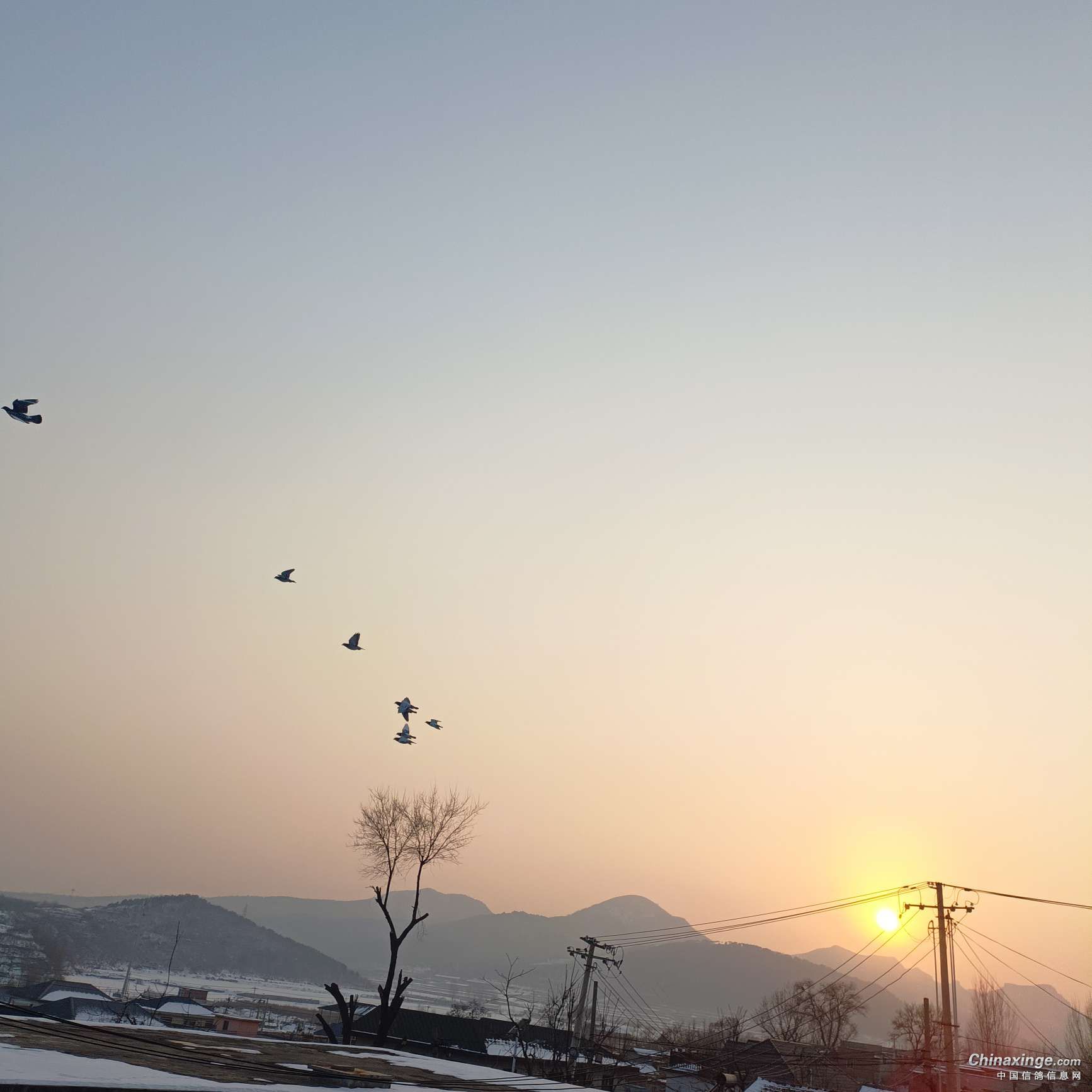 那天的日落。我的爱鸽在家飞