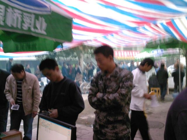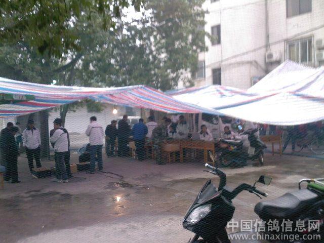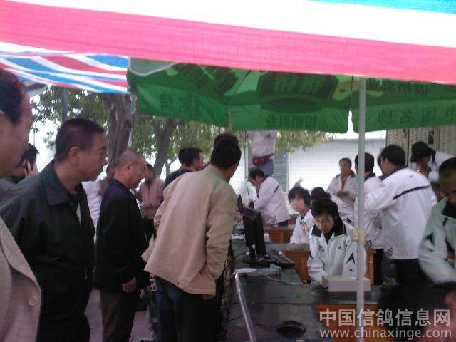 场内场外的鸽友,场外等候的鸽友等待叫号入内。