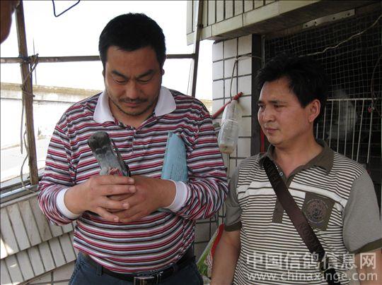 苦脑的冠军得主----谢忠明,把经过验鸽回来的冠军,再次验明证身.