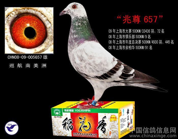 “兆尊苍白”不仅在赛场上成为了一个传奇,更为一羽赛鸽创造的经济价值而成为一个神话。它那美丽的羽毛、辉煌的战绩、绝顶的遗传使它成为中华鸽人人人皆知的大名鸽;它带给人们的快乐和享受更是无法以金钱来衡量。 本舍 南美洲CHN2008-09-005657花 雄 中国巡航七大洲之一!