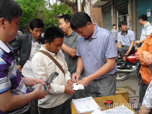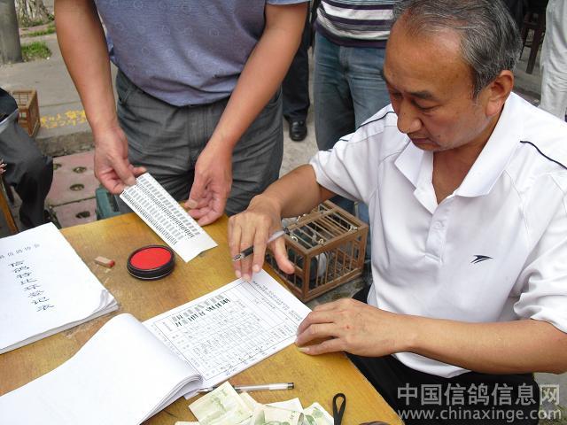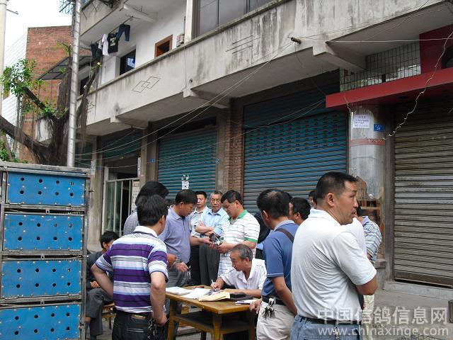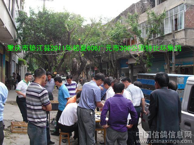 作品说明: 广元300公里特比环决赛集鸽花絮 2011年6月2日,星期四,18时。又是一个下班时,重庆市垫江县的鸽友忘记了一天的工作疲惫,给出征赛鸽准备了一顿丰盛的“最后晚餐”。火速提上决赛鸽,怀揣幸运之神的到来。参加了由重庆垫江县信鸽协会举办的,2011年 “606”,即初夏的每年6月6日,端阳节,四川广元300公里特比环决赛。协会主席亲临现场集鸽。2日19时离开垫江县。前几届“606”是6月6日决赛放出,风雨无阻,损失惨重。特比环每颗售价210元。而今年选择了前后3天决赛,因为重庆端阳节雨天较多,根据多数参赛鸽友意见,今年规程做了调整。提前了3天决赛,于2011年6月3日放出。谁能给鸽主人带来好运气,明天一见分晓。 朝天,位于四川省北部,川、陕、甘三省交界处,介于东经105°35′~106°17′,北纬32°31′~32°51′之间,区境东西长63公里,南北宽43公里,幅员面积1620.5平方公里, “朝天”之名由来有三。之一:唐天宝年间,唐明皇为避安史之乱,携文武百官奔蜀,行至朝天,蜀中百官齐聚朝天接驾,黄土垫道,笙歌齐鸣,朝见天子,后人为之纪念,取此地名为“朝天”。之二:远古时候,有一孽龙盘踞朝天一带,兴风作浪,洪水朝天,上天动好生之德,救民于水火之中,遂派二郎神杨戬带领天兵天将下界制服,孽龙负隅顽抗,二郎神将其追至龙洞背,三神箭射穿龙门三洞,猪八戒趁势一耙把孽龙挖了个四脚朝天,故将此地命名为“朝天”。现铁巴山还留有猪八戒九齿钉耙印的九条梁和杨戬射穿的龙门三洞。之三:该地水陆栈道皆通,夏秋水涨即登山走陆栈,历代有碑书“大路朝天”故名。此三种说法,无从考证,不得其宗,后人多倾向前者。 朝天区地势为东北高,西南低,境内最高峰大尖山,海拔1998.9米,最低点酒茶沟,海拔475米,相对高差1523.9米,由此形成东北部中山区、中部河谷平坝、西南低山区的特殊地理环境。区境内有大小河流14条,分别由东北和西北两个方向呈“非”字形注入嘉陵江,嘉陵江在区境内流程52公里,流域面积1000平方公里,在其流域内的峡谷雄伟险峻,自然风光幽美。这样的地形结构,可能对垫江赛鸽带来不利,多数赛鸽可能顺嘉陵江流域而下南飞,而垫江地理在东南方,归巢时要翻越“三座大山”,华蓥山、铜锣山、明月山。没有翻座大山的赛鸽,它是回不到主人身边的,鸽友将拭目以待。 集鸽地点:垫江县桂溪镇陵园路茶园 集鸽裁判: 刘天成 程庆华 司放地:四川广元朝天区 空距:300公里 司放裁判: 陈 杰