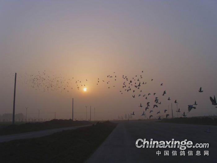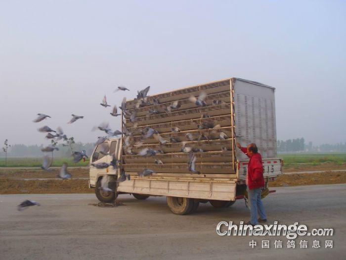 作品说明: 21号下午7点集鸽封笼,向比赛地确山出发,经过10个半小时的疾驰! 行驶650余公里,22号早5:33分到达确山收费站。与当地鸽协领导联系 选择在确山高新区开笼。当地天气晴,无云,微风!定位仪测好坐标, 确山鸽协领导检查完封笼铅印完好。给赛鸽充分休息时间,6:30分准时 开笼放飞。