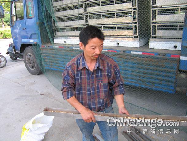 负责接鸽上笼的国家二级裁判员王良进先生