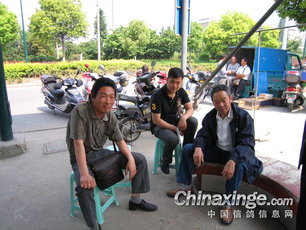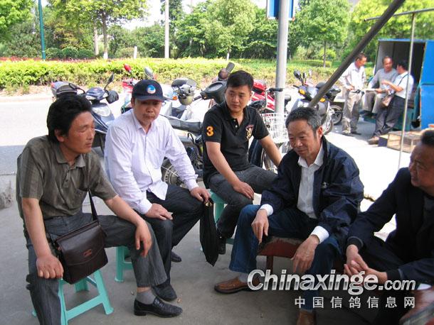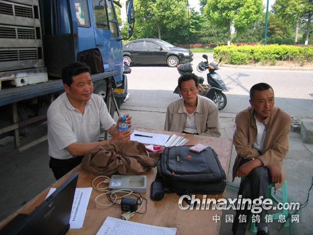 南通市信鸽协会委派裁判(左)和国家级裁判、泰州市信鸽协会秘书长严子林先生(右)在商谈集鸽有关事宜.