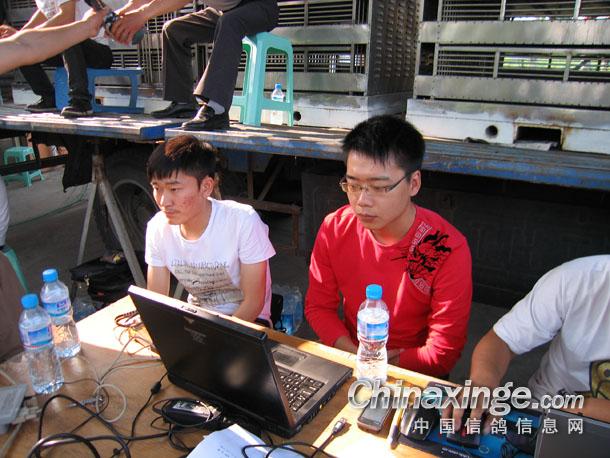 电脑集鸽组组长杨兵先生在聚精会神的调试电脑.