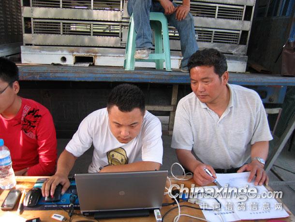 电脑操作员目不转睛、严肃认真的核实赛鸽上笼数据