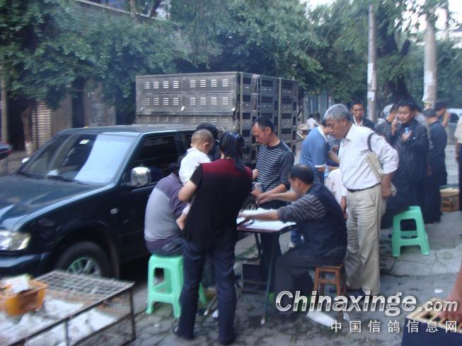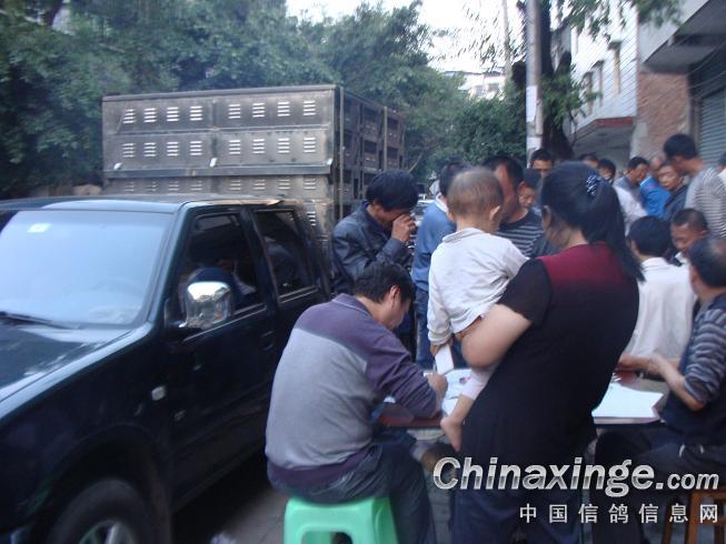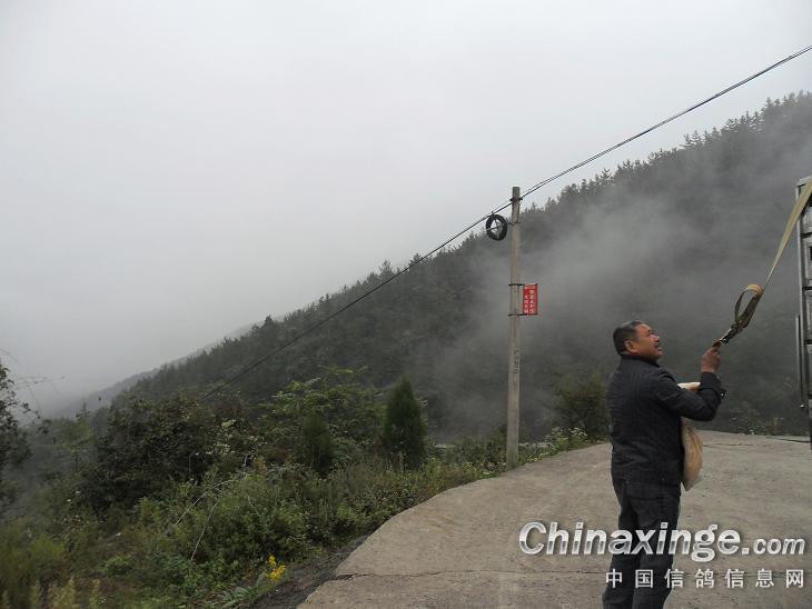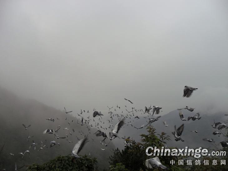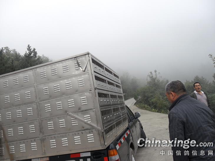 作品说明: 梁垫特比环决赛棋盘关 决赛地点: 棋盘关:位于朝天区转斗乡校场村与陕西宁强县黄坝驿乡关沟村的七盘岭(唐初称五盘岭)上,因从山脚到山顶,道路需盘旋7次才能至山顶而得名。《辞海》载:“七盘关在四川广元东北与陕西宁强交界的七盘岭上,为川陕间的重要关隘之一。明宗祯十年(公元1637年),李自成率农民起义军自陕西进兵四川,即取道于此。” 集鸽时间和现场 秋天之时的重庆、四川、陕西省,又处于长江中下游梅雨时段,空气中湿度在90%以上,天空雾气迷茫,时而阳光亮出,时而阴雨绵绵……。人们感觉昏沉沉的。2012年10月1日下午15时~19时,阳光明媚,重庆市梁平县、垫江县两县300公里联赛陕西省宁强县棋盘关10月1日举行,鸽友忘记了晚餐的时间,确没有忘记给参赛鸽最后晚餐的机会。怀着必胜的信心,参加了2012年秋季棋盘关300公里特比环决赛集鸽。15天的绵绵细雨过后,今天老天又开眼了,这样的天气急戮两县鸽友,渴望老天能多晴上一天,“冠军”是自己的了……。决定侥幸2日举行决赛。通过几次训放和预赛,特比环决赛集鸽不足200羽,通讯赛在100羽左右。两县联赛集鸽于19时结束,赛鸽车于1日晚上19时出发了 司放地点和现场 300公里宁强县棋盘关赛鸽车19时从重庆市垫江县出发,于2012年10月2日平安到达陕西省宁强县棋盘关。通过休息,2012年10月2日晨8时30分,陕西省宁强县天空雾气满天,晨意空气是那么新绚,没有一丝污染,秦岭山真是留得住菜鸽,留不住勤劳的优胜鸽。特比环和通讯赛赛鸽在此开笼了。当司放车行程50公里后遇上了大雨,沿途大雨整整一天………。到发稿时,只见司放员回家,不见赛鸽归巢……。真是喋血棋盘关。根据规程比赛继续,明日棋盘关论剑,花落谁家。 集鸽地点:垫江县信鸽协会活动中心 集鸽: 特比环200羽左右 通讯赛100多羽 集鸽裁判:垫江县裁判刘天成 杨幸福 陈 林 胡 奎 梁平县裁判 司放地:陕西省宁强县棋盘关 司放地点天气:晴天。 空距:300公里 司放员:向 明 蒋林祥 驾驶员:唐顺成 司放地点时间:2012年10月2日7时30分。 司放坐标:东经:106°25′北纬:32°82′ 报到地点:垫江县 梁平县 报到裁判:梁平县 垫江县互派 下面欣赏司放现场瞬间和报到现场:
