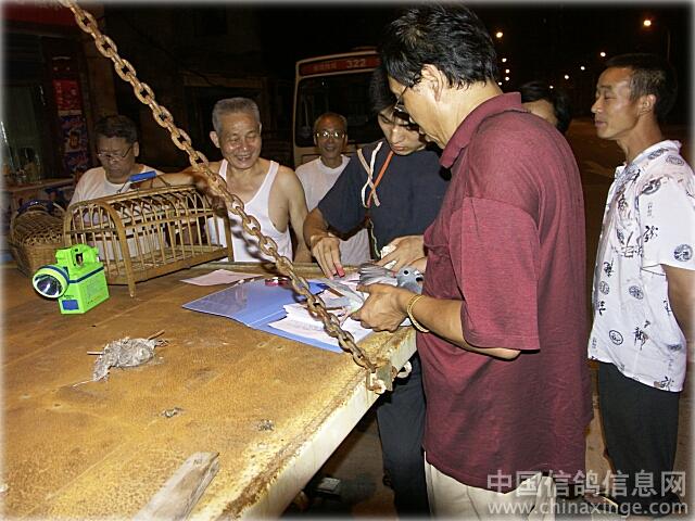 作品说明: 2007年6月2日23时,重庆华子赛鸽俱乐部“七.一”杯特比环大赛,第一关出关集鸽(特比环)合计898羽。 放飞施家梁。3日放飞遇雨天,估计将会给部分赛鸽归巢带来不利影响。