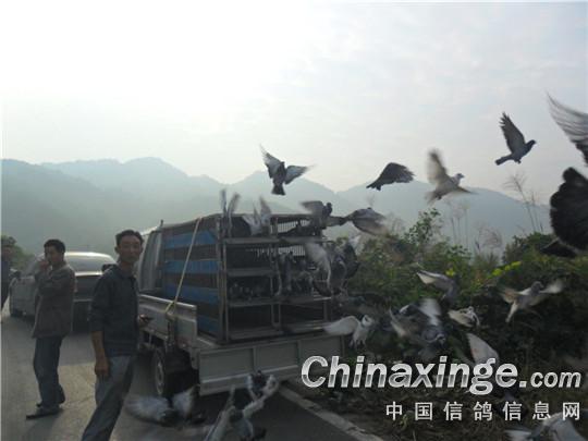 重庆铁路信鸽协会垫江站信鸽协会、垫江县翔友赛鸽俱乐部。2013年秋季陕西柴关岭特比环赛,在全民欢度国庆最后一天之际,今天9时08分集鸽训放梁平县七星镇五一五站了,重庆市梁平县七桥至五一五段(K1640+000至K1984+000),海拔高度在407—1086米之间,七星镇五一五站位于梁平县天生镇大垭口下面,训放地点海拔高度900米左右,主峰1120米。于竹山站为反向,一般的赛鸽多数向四川大竹县方向飞翔,不愿意翻越1120米的主峰。2013年秋季梁平县五一五站。于10月7日晨6时00分~7时00分集鸽了,集鸽200多羽。由于特比环柴关岭足环卖了400多枚,前期参赛鸽友有部分拿到兄弟鸽会参加170公里大巴山(巴中资格站)和私训损失了不少,所有集鸽也不多。赛鸽车7时从垫江出发,沿S102省道,沿途收下乡镇特比环鸽。梁平县七桥转G318国道线行驶。7日9时08分放出,有轻雾,天气不是特好,第一批赛鸽9时40分左右归巢,下一站预计9日集鸽放四川省大竹县石桥站或者梁平县碧山站。