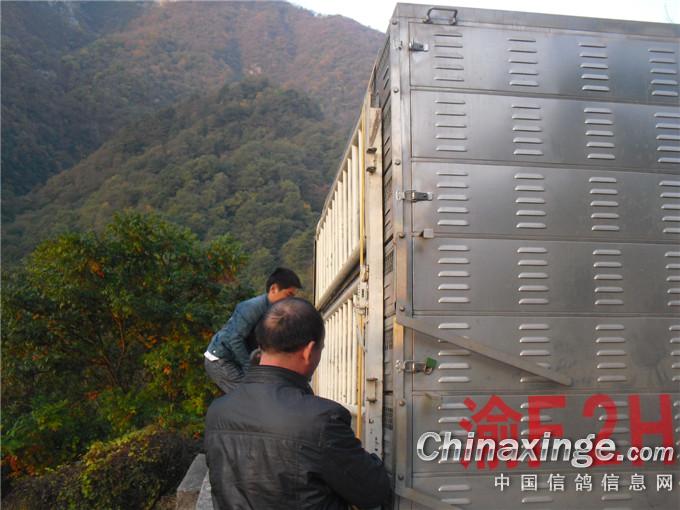 秋天之时的重庆天气突然暴热,司放员汗流浃背……。2013年10月9日下午15时,重庆市梁平县、垫江县两县司放员,乘座赛鸽车一路颠簸,疲劳。10日赶到了陕西省秦岭凤县柴关岭。赛鸽在晨意下做了充足的休息。10日早晨7时许:两县联翔的秋季特比环和登记赛赛鸽在此开笼了。秦岭和重庆都在秋高气爽,烈日高照天气下顽强拼搏。下午1时许,垫江县李行权鸽友的一羽参赛鸽,夺得特比环联翔总冠军。李高远鸽友圆窝鸽分别夺得亚军和季军……。到晚上9时终止报到时,主办方,梁平县特比环报到6羽,垫江县报到7羽。13羽佼佼者将瓜分22万奖金。据不完全统计,此次决赛鸽350羽左右,特比环和登记赛总归巢为10%左右,飞速高达1200米/分以上,打破了山区秋季赛事成绩记录。