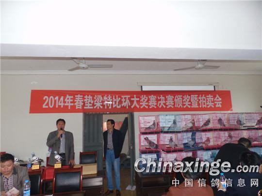 2014年5月17日上午,阴雨天气后放晴,艳阳高照。梁平县获奖鸽友9时前,驱车早早来到垫江。拍卖会得到了农机监理站大力支持,给协会提供友情赞助,提供会场。使鸽友有一个好的环境拍卖赛鸽。