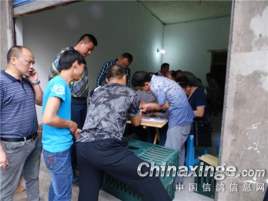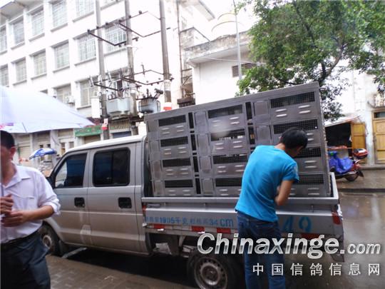 重庆垫江劳动节的清晨已是乌云密布,真有山雨欲来风满楼的场景。时针指向10点,老天突然变脸,顿时大雨倾盆。但是没有浇灭翔友参赛鸽友集鸽的热情,为迎接秦岭400公里决赛,对赛鸽进行了精心调理。多数鸽友吃了早饭匆匆忙忙提着决赛鸽来到集鸽现场——垫江县翔友赛鸽俱乐部,垫江县桂溪镇陵园路140号,同时邻县长寿区石桥坝、海棠镇的鸽友,也来参加了集鸽决赛。集鸽现场气氛热烈,风雨无阻、排队上笼,集鸽程序有条不紊。通过验收号码登记,贴密码,盖暗章,应该做到了公平、公正、公开。集鸽从上午10时开始,到下午1时20分结束,赛鸽车1时30分才从重庆垫江县出发。