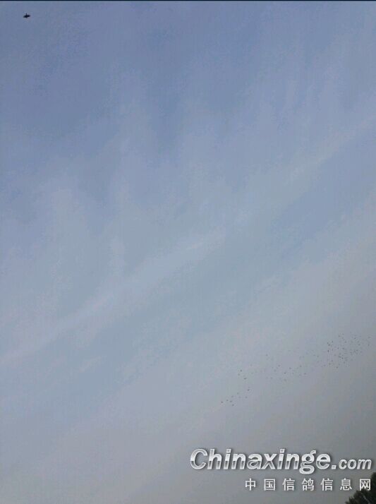 不知你们能看清楚吗,里边的小黑点点,是天空中盘旋的两群赛鸽,不知道是不是我们的。