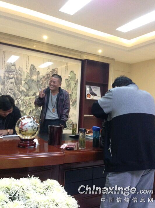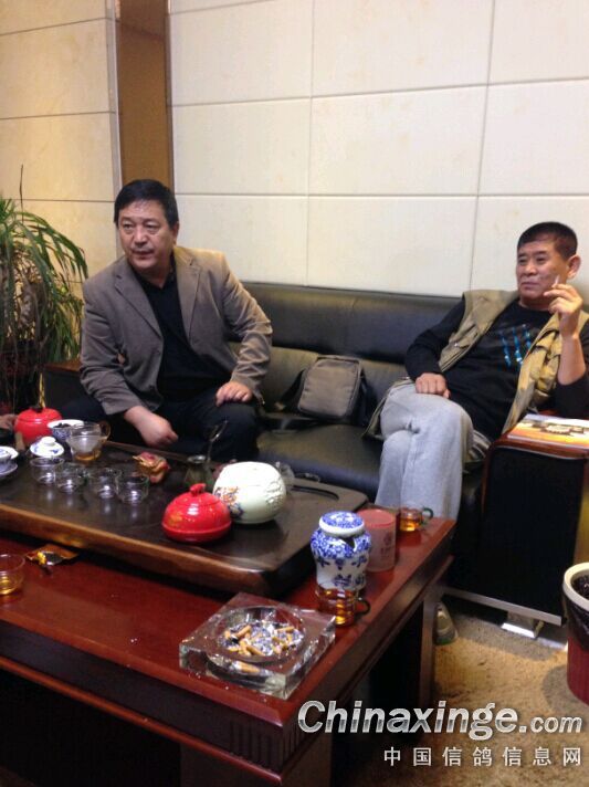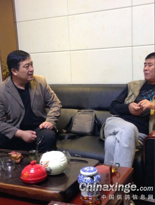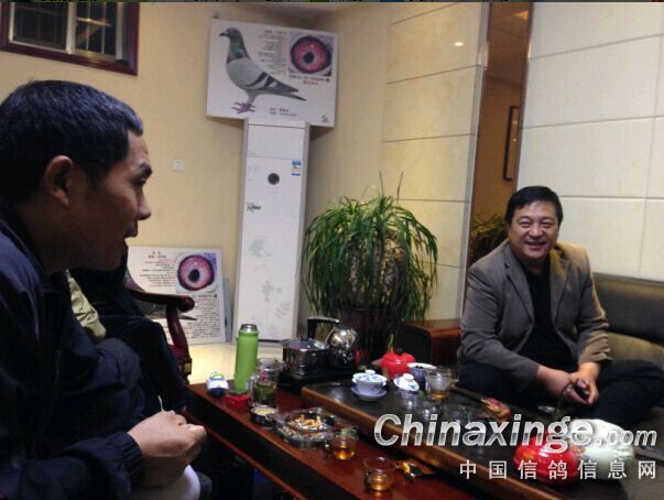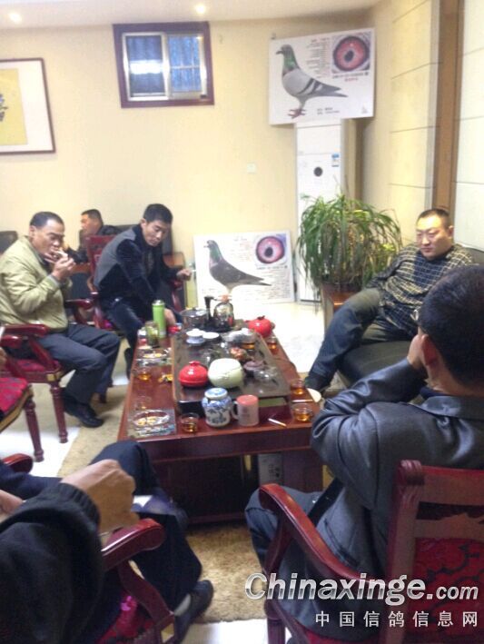 早来的鸽友在办公室里喝茶聊天,谈鸽子。
