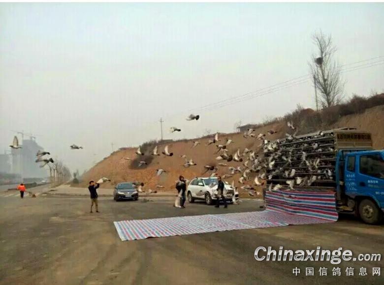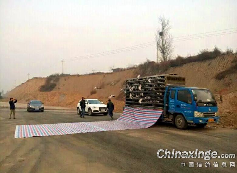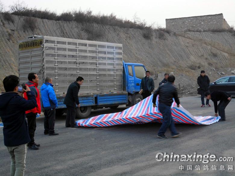 1 - 陕西凤翔秦都赛鸽公棚300km比赛鸽,早晨刚下韩城高速路收费站。